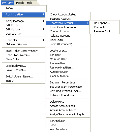 Screenshoot: AIM priviledges menu
